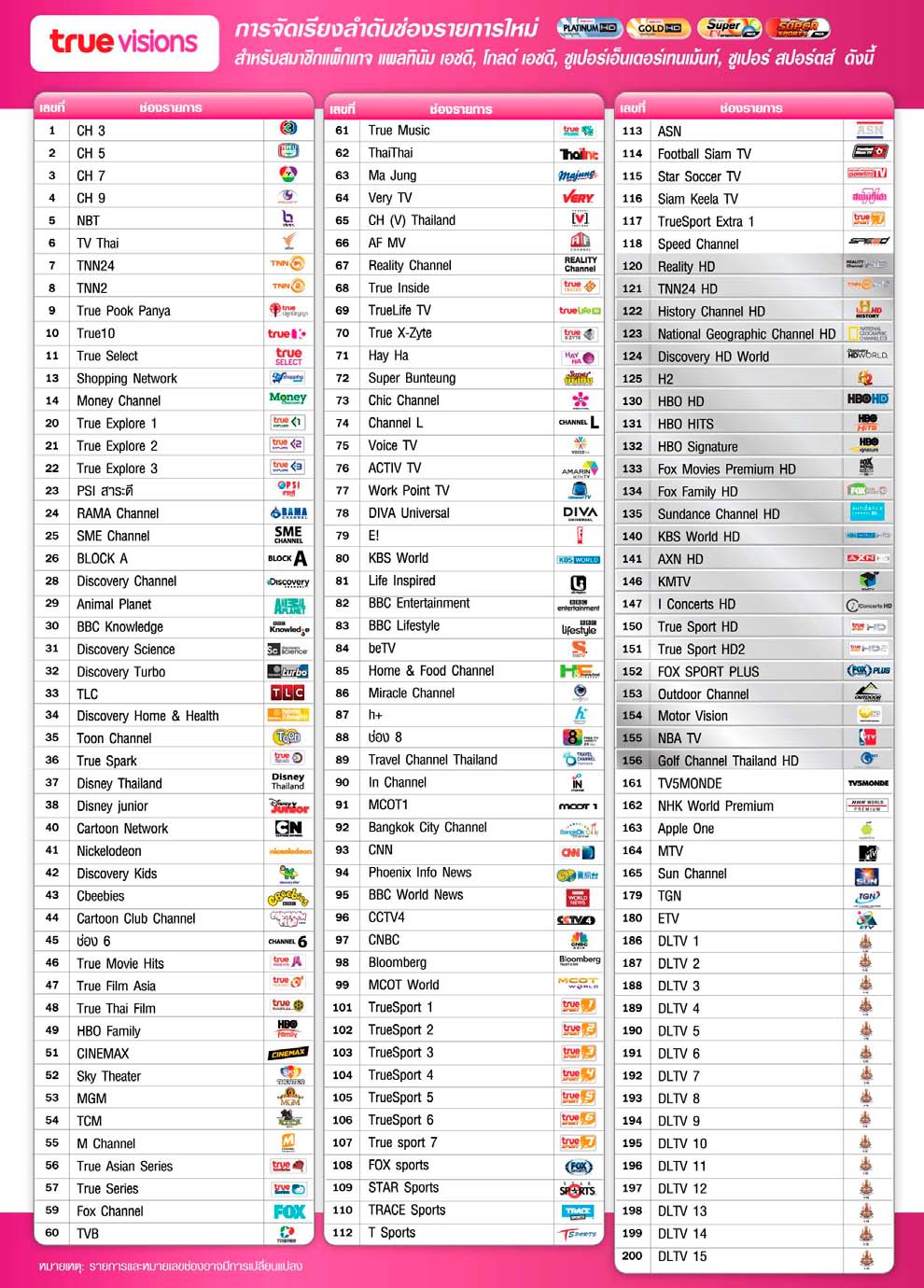 เชิญชม ลำดับช่องรายการของ True Visions หลังวันที่ 18 เมษายน 2556 ครับ