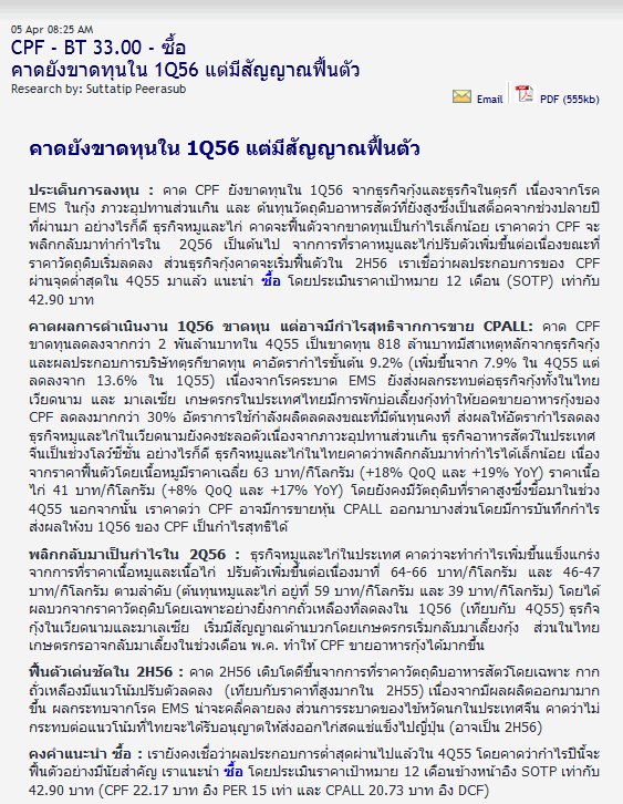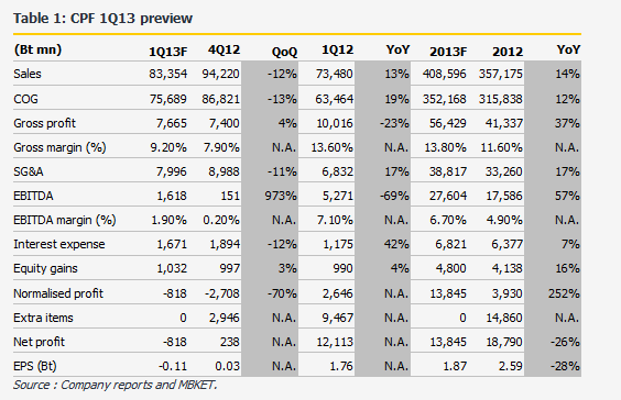 CPF คาดไตรมาส 1 2556 จะขาดทุนครับ