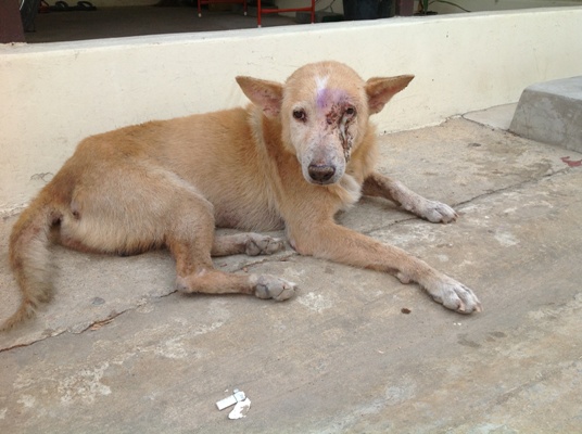 เจี๊ยบได้อ่านเรื่องราว การขอความช่วยเหลือ หมาตัวนึงที่กำลังเป็นมะเร็ง จนหนอง และเลือดไหลออกมาจากโพรงจมูก และตา จากคุณเล็ก ผ่าน FB น้องอ้อมน้อย ได้รับการรักษา http://pantip.com/topic/30379359 น้อ