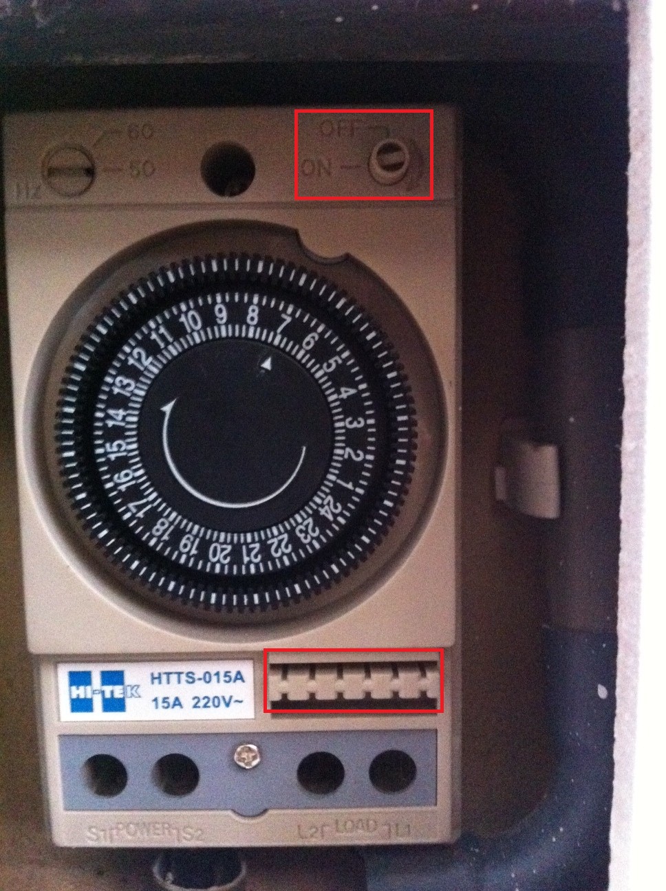 ใสอุปกรณ์ตัวเล็ก ๆ สีขาวเสียบเข้าไปที่เวลาที่จะให้เปิด แล้วสีแดงให้เสียบไปที่เวลาปิด