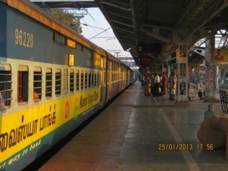 รถไฟไปKanyakumari ออกจาก Bangalulu เวลา 21.30 ผมวิ่งกะหืดกะหอบขึ้นรถหาที่นั่งของตัวเองแทบไม่ทัน เพราะมัวฟังเพื่อนถกเรื่องภาษากับสมองNeural network ที่สโมสรนักข่าวเพลินจนแทบไม่อยากลุกจากเก้าอี้
