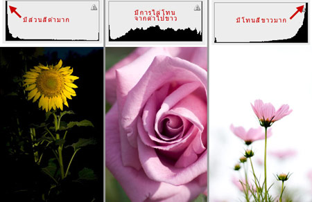 มองค่า histogram (กราฟแสดงจำนวนพิกเซล) ภาพผ่านหน้าจอ LCD โอเค