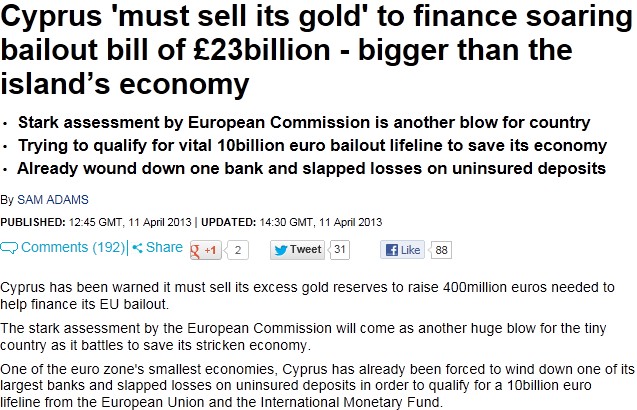เหตุที่ราคาทองตกในช่วงนี้คือ ไซปรัสเตรียมขายทองคำสำรองของประเทศมากเป็นประวัติการณ์ของฝากฝั่งยุโรป