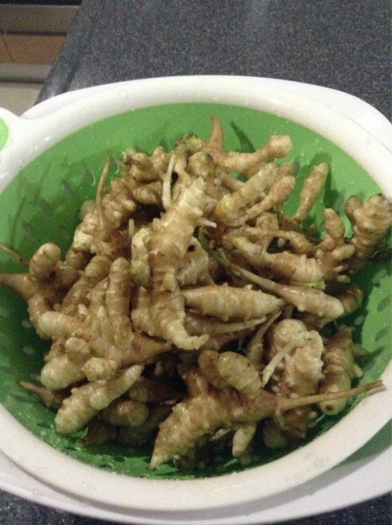 ซื้อจากอตก.มา 6 แง่ไม่ได้สนใจเลยเผลออีกทีแตกลูกแตกหลานมาซะเยอะเลย มีทั้งแก่ทั้งอ่อน ตอนนี้ขุดออกมาหมดแล้วเพราะเบียดต้นมะเขือ เอ....จริงๆถอนมะเขือออกจะดีกว่ามั้ยน้อ 55555