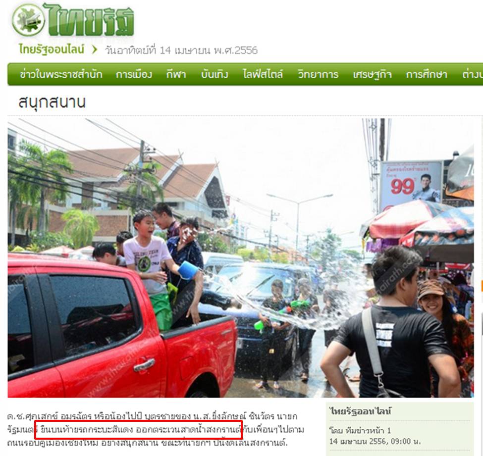 **น้องไปป์ ลูกชายยิ่งลักษณ์ (นายกรัฐมนตรี) ยืนท้ายกระบะแดง สาดน้ำสนุกสนาน ฮิ้ววว