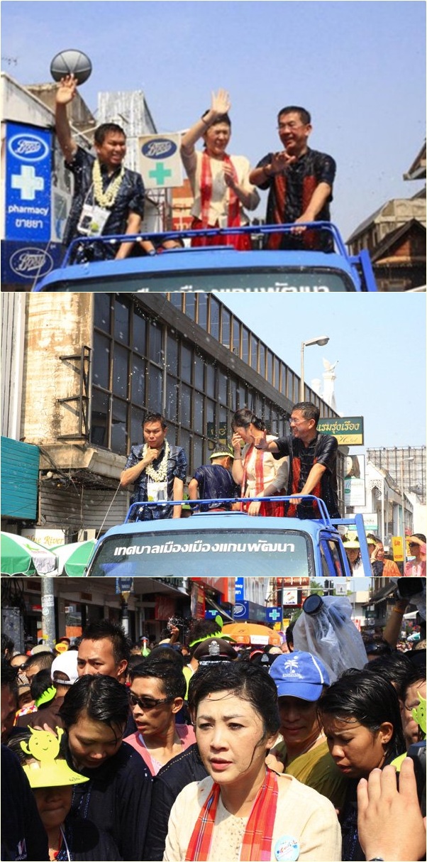 อดีตนายกฯ ปู ออกมาดูขบวนดำหัว ผวจ.เชียงใหม่ ทำลูกขบวนที่ร่วมแห่สระเกล้าดำหัวผู้ว่าราชการจังหวัดเชียงใหม่ แตกแถวออกมาแห่รดน้ำและถ่ายขอรูปอดีตนายกฯ ส่วนที่ถนนลอยเคราะห์ สนุกสุดเหวี่ยง นทท.ชาวยุโรปและชาว