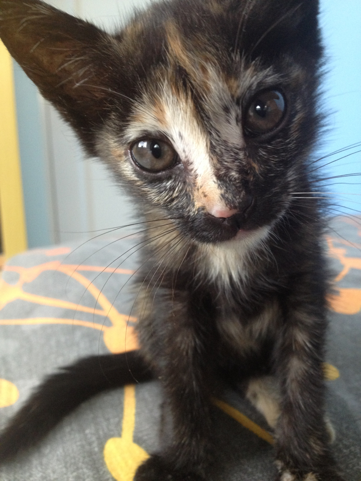 เป็นแมววัยรุ่นตัวเมีย อายุราวๆ 5-6 เดือนจับมาจากในซอยแถวพหลโยธิน พาไปทำหมันมาแล้ว รับกลับมาไม่อยากปล่อยกลับที่เดิมแต่ก็ไม่มีที่ให้อยู่ ขอคนรับเลี้ยงชั่วคราวหรืถาวร แต่ขอเป็นคนที่เข้าใจแมวจรยังไม่เชื