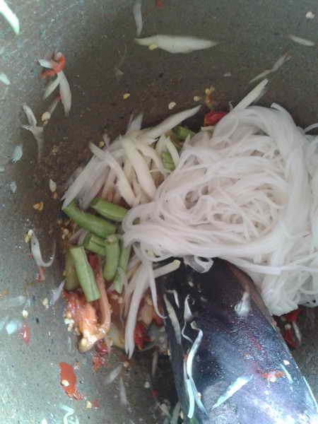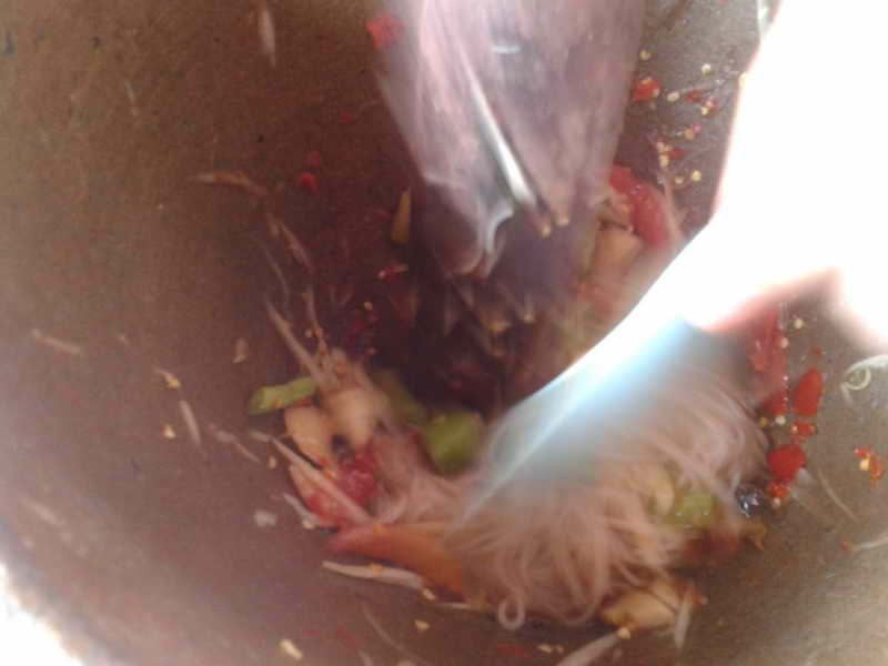บ่ายนี้อากาศดีมาก ไม่ร้อนไม่หนาวทำให้รู้สึกง่วงๆ จึงลุกไปหาอะไรกิน ไม่รู้จะกินอะไร ตาเหลือบไปเห็นมะละกอ หนมจีน เมนูในหัวก็ลอยมาเลย ตำซั่วเผ็ดๆๆ กินดีกว่า โชคดีที่มี หมูกระจกกับไข่ปิ้ง ที่ซื้อมาตอนเช