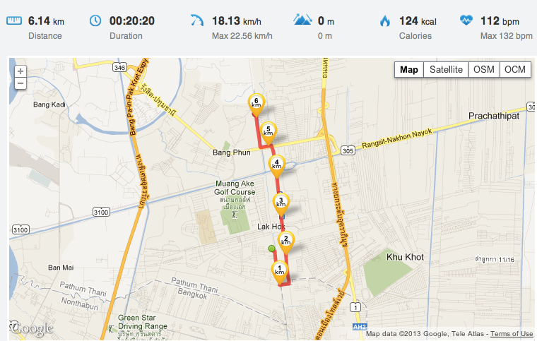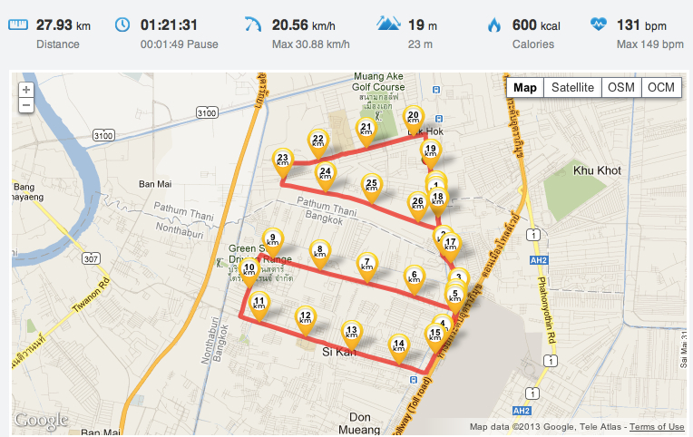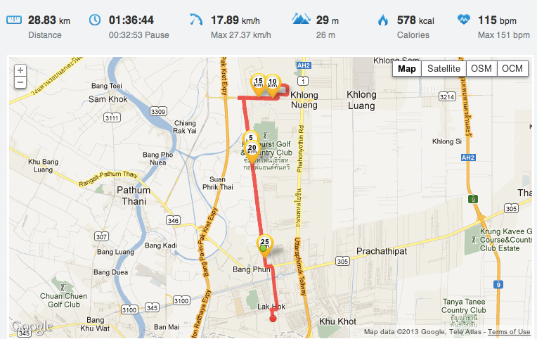 อีกนิดหน่อยน่าจะโอเค เลยได้เส้นทางปั่นดังนี้ครับ จุดสตาร์ทแถวๆเมืองเอกรังสิตเหมือนเดิม