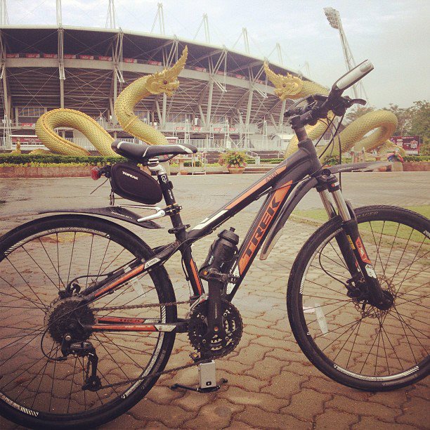 พาหนะคู่ใจ trek 4300 ซื้อมาปั่นเพื่อชีวิตได้ 2 ปีแล้วไม่ได้เปลี่ยนอะไรแค่งอก บังโคลน,กระเป๋า, ไฟหน้า-หลัง, กระจกมองหลัง