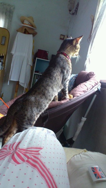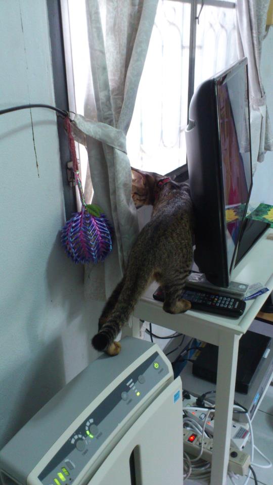 พยายามปีนหน้าต่างดูว่ามีอะไรข้างนอกบ้าน