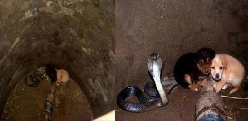 ลูกหมา 2 ตัวตกลงไปในบ่อ อยู่ร่วมกับงูเห่า 48 ชั่วโมง