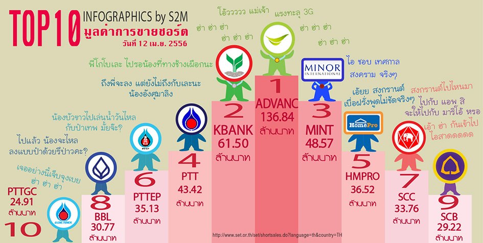 Top 10 มูลค่าการขายชอร์ต (Short Sell) วันที่ 12/4/2556