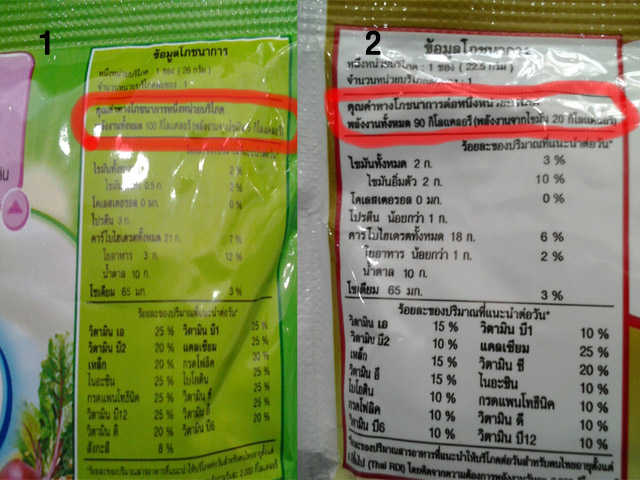 อยากสอบถาม คุณค่าของอาหารนะคะ ของ 2 ยี่ห้อนี้