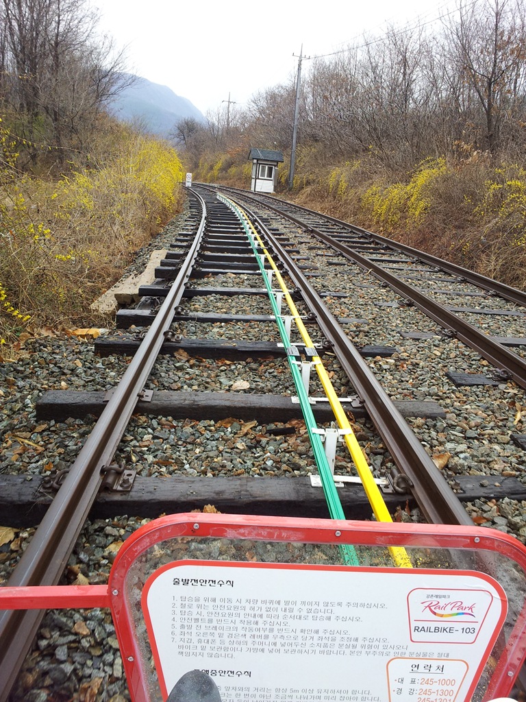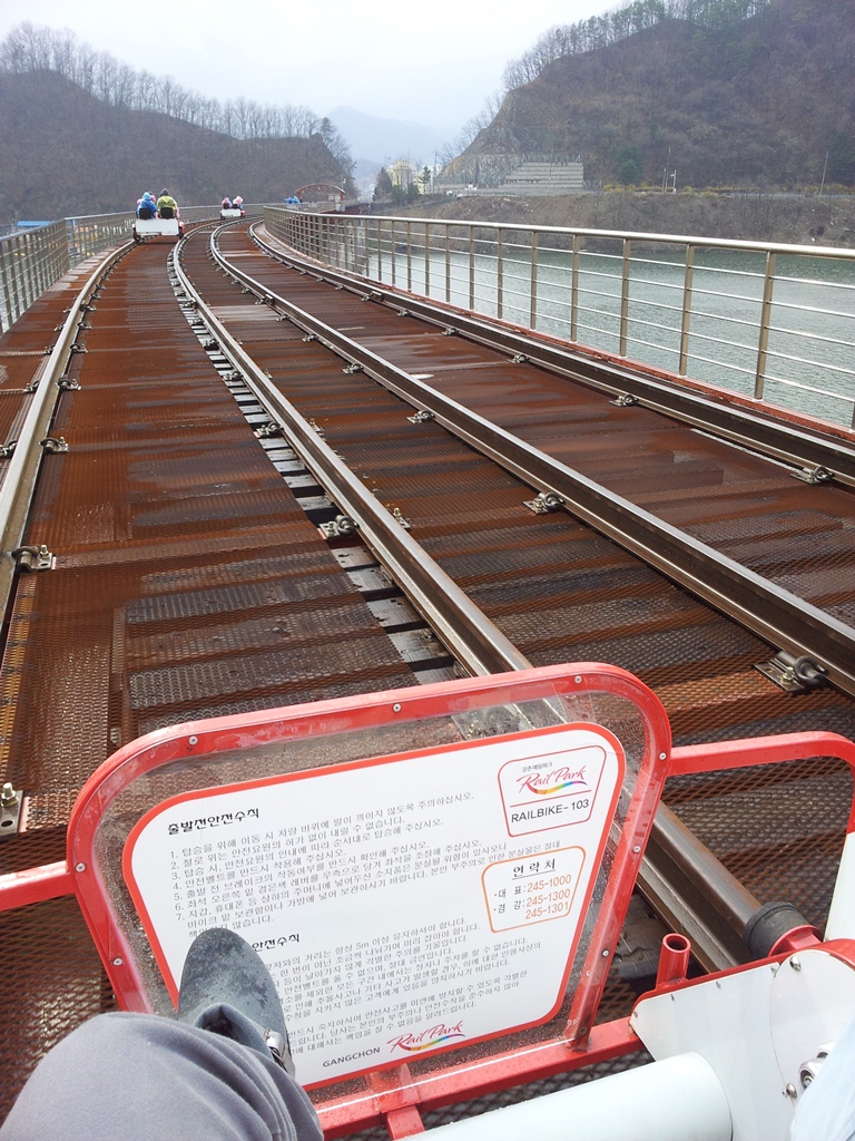 -ขึ้นจากเกาะนามิ ก็ไปปั่นจักรยานเรียวไบท์ RAIL BIKE ปั่นบนรางรถไฟ นั่งได้คันละ 4 คน