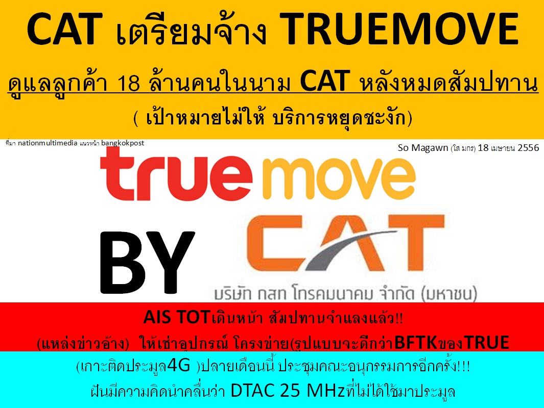 1.... CAT เตรียมจ้าง TRUEMOVE ดูแลลูกค้า 18 ล้านคนในนาม CAT หลังหมดสัมปทาน( เป้าหมายไม่ให้ บริการหยุดชะงัก)