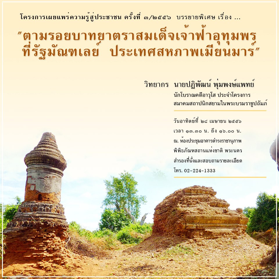 เชิญผู้สนใจมาร่วมฟัง "ตามรอยสมเด็จพระเจ้าอุทุมพร ที่ประเทศสหภาพเมียนมาร์" วันที่ 28 เมษายนครับ