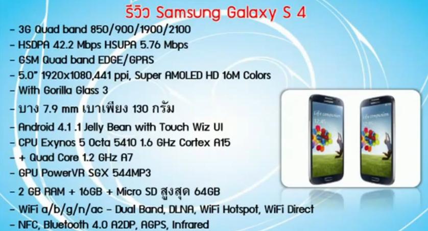 ผลทดสอบ Galaxy S IV รุ่น 3G ออกมาแซงหน้ารุ่นที่เป็น LTE AnTuTu Quadrant ใบ้วันจำหน่าย http://www.youtube.com/watch?v=1Z4CF8U-3hI&t=35m20s http://www.youtube.com/watch?v=1Z4CF8U-3hI&t=35m