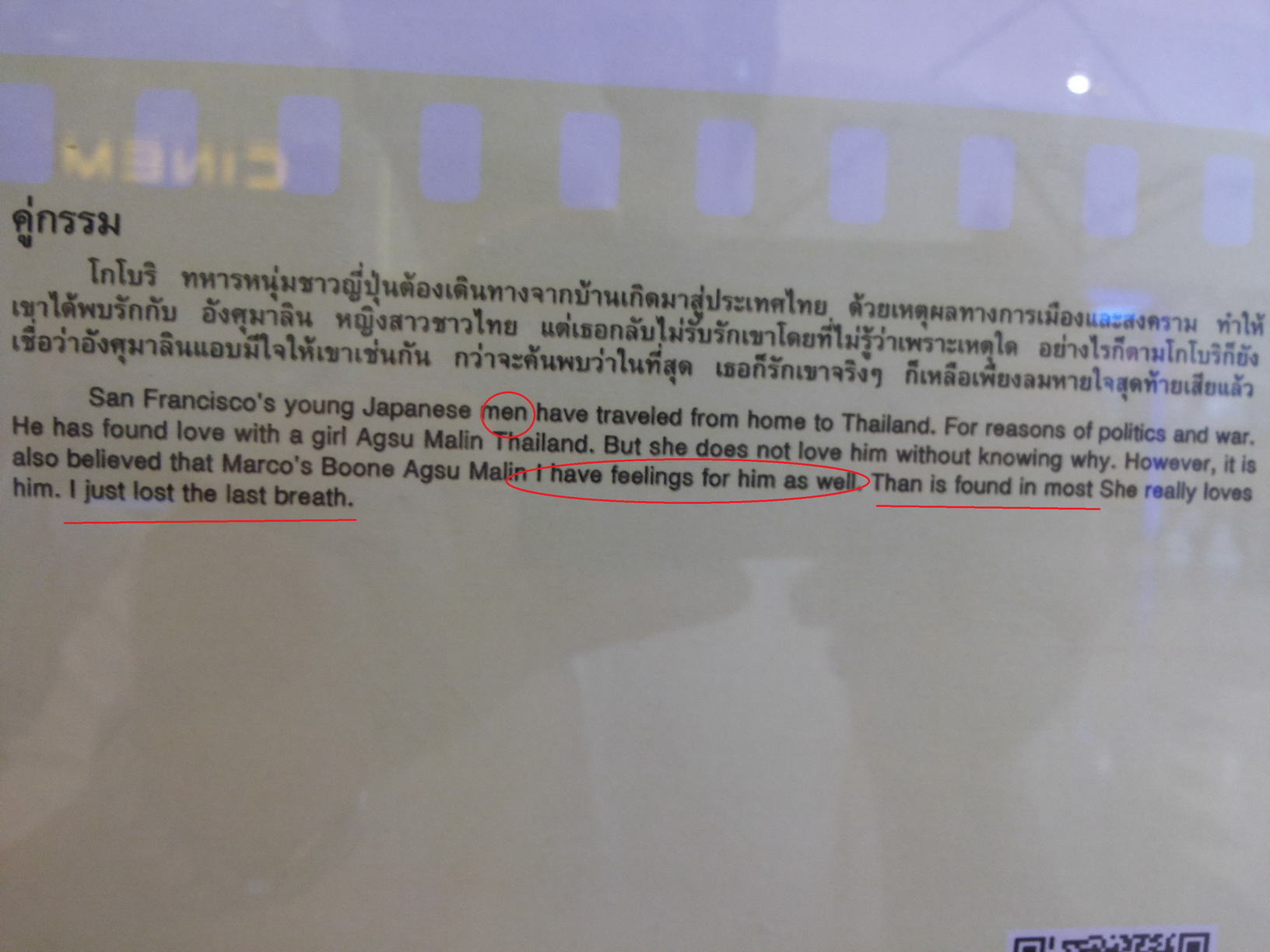 ป้ายเรื่องย่อหนังหน้าSFสาขาลำปางครับ ถ้าไม่มั่วสุดขีด ก็ใช้googleช่วยแปลแหงๆ ยืนอ่านแล้วอึ้งไปพักนึง