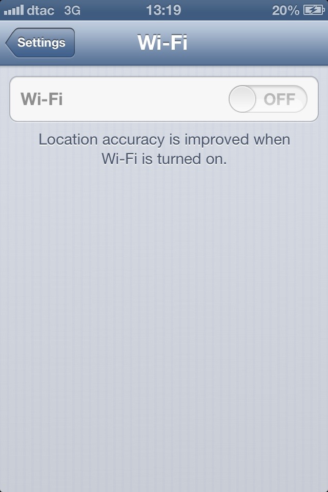 ปุ่ม ต่อ wifi มันเป็นสีเทา ไม่สามารถ เลื่อนได้ ปิดเครื่องเปิดใหม่ก็เป็นอาการเดิม อย่างในรูป ใครเป็นบ้างครับ เป็น iphone 4s ครับ