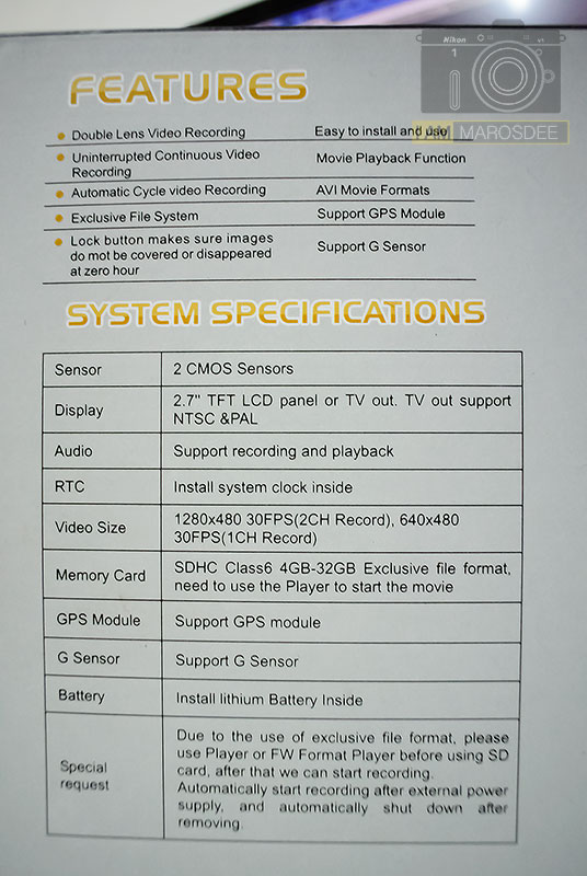 - มีเซ็นเซอร์ตรวจจับการกระแทก เพื่อป้องกันเวลาเปิดอุบัติเหตุ จะสามารถบันทึกไฟล์ทันที ทำให้ไฟล์ไม่เสียหาย เอาไว้เป็นหลักฐานอย่างดีเลย