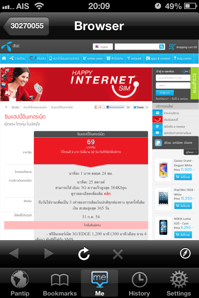 ถามซิมนาโนดีแทคใส่ไอแพคมินิหน่อย