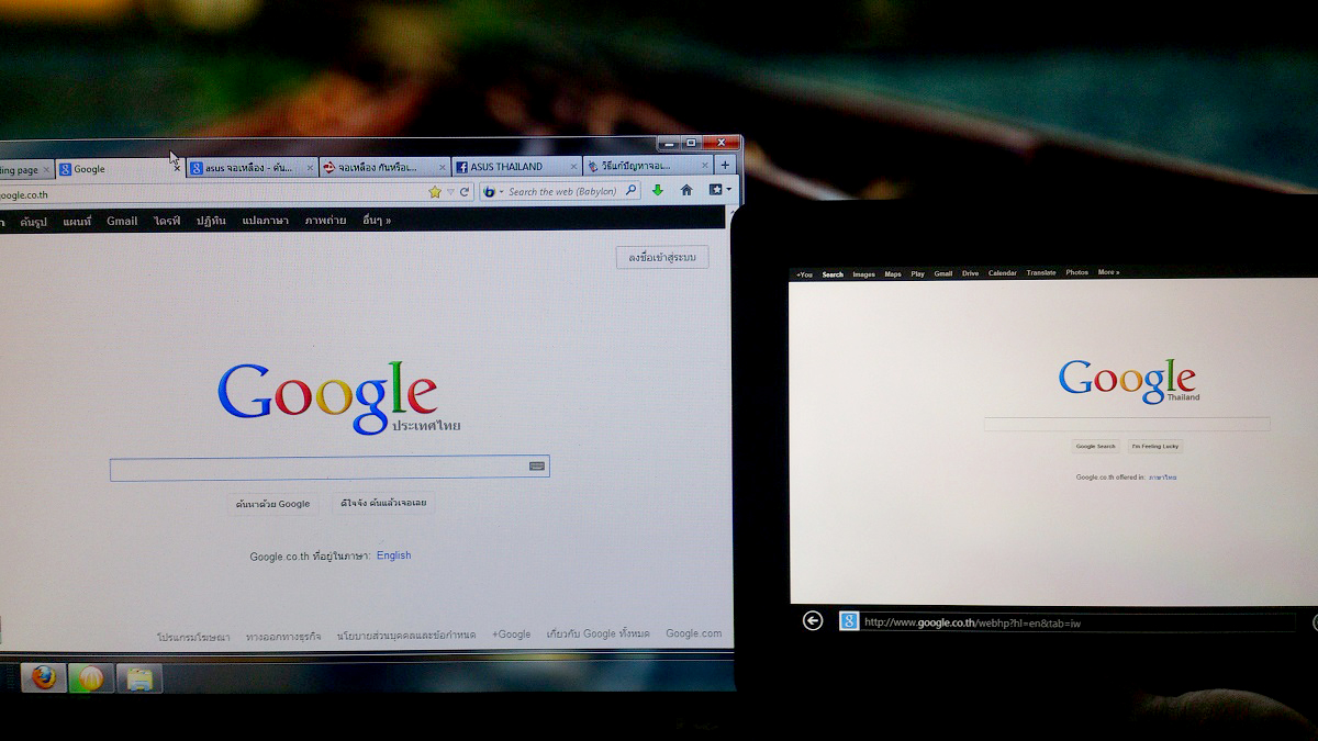 2.เปิดหน้าต่าง Google เพื่อเปรียบเที่ยบ พื้นขาว ครับ พบว่า จอของ tablet เหลือง กว่าครับ (ด้านซ้ายรูปจากจอคอม ด้านขวารูปจาก tablet ครับ)