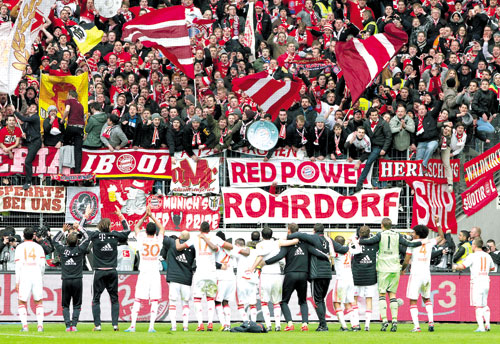 บรรดาขุนพลทีม ''เสือใต้'' บาเยิร์น มิวนิค ไปขอบคุณแฟนๆ ที่คอยตามเชียร์และให้กำลังใจมาตลอดทั้งฤดูกาล หลังจบเกม