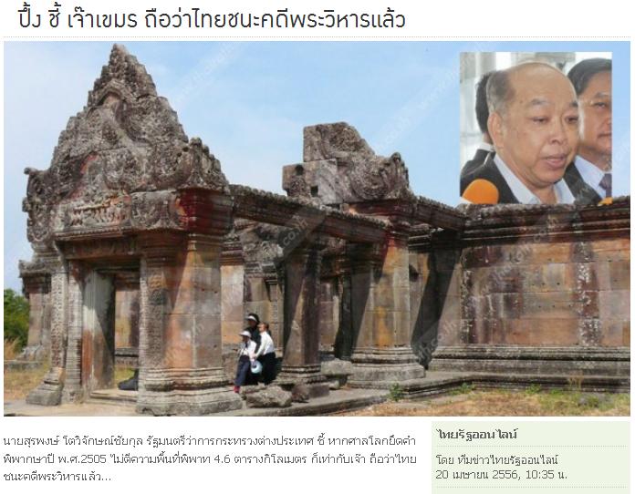 ปึ้ง ชี้ เจ๊าเขมร ถือว่าไทยชนะคดีพระวิหารแล้ว...................... เรื่องนี้รัฐบาลยิ่งลักษณ์ได้คะแนนบวก