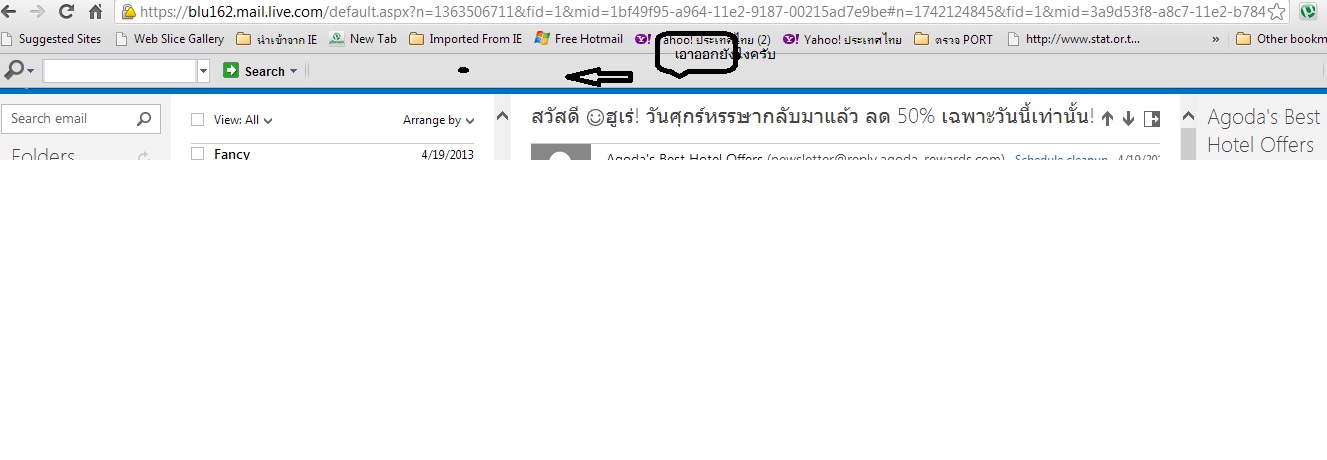 บาร์ ตรงลูกศีชี้ครับ มันไปบังบาร์คำสั่งของ OUTLOOK ตอนแรก งง ว่าคำสั่ง ส่งเมล หายไปใหน