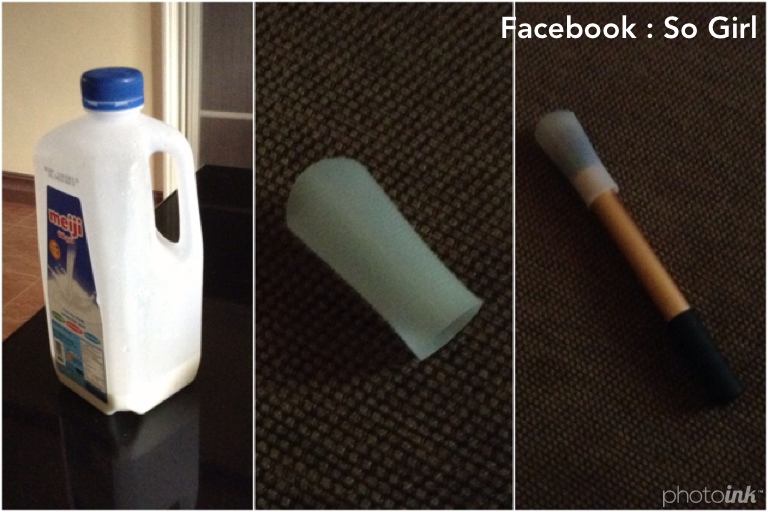 อันแรก หูจับขวดนมขนาด 2 ลิตร มันพอเหมาะพอเจาะกับแปรงคอนทัวร์ของ Real Technique เป๊ะๆ