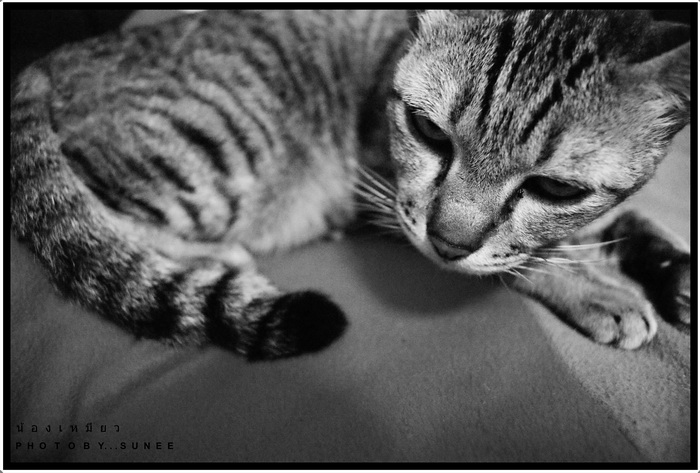 สวัสดีค่ะ หนูชื่อทริปเปิ้ลค่ะ เป็นแมวลายน้ำตาล หางกวัก วันนี้หนูอยากนำภาพที่หนูไปถ่ายแบบมาให้เพื่อนๆรับชมกัน เริ่มจาก Black&White set ตะเอ่!! แต่ละภาพของหนูจะเน้น ท่านอน นอน และนอน ZZZzz