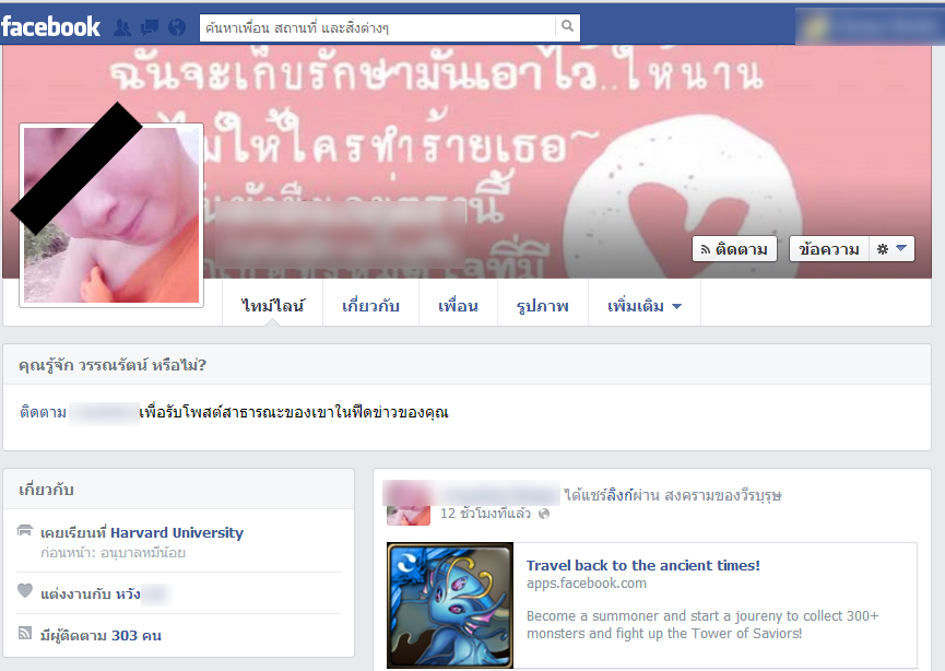 ซึ่งมีแถบบอกว่าให้เข้าไปกดไลค์เพจของเว็บได้ โดยมีรูปผู้คนที่ไปกดไลค์เพจมาแล้ว แล้วก็ไปสะดุดกับรูปหนึ่ง