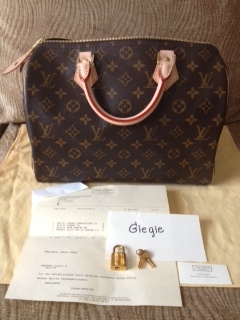 1. LV speedy monogram 30 used like new ซื้อมาเองจากปารีส พค ปีที่แล้ว หิ้วไป 2-3 ครั้ง ครั้งละ 4-5 ชม นอกนั้นเก็บในตู้ ใส่ดันทรงตลอด อุปกรณ์ครบ ถุงกระดาษ ถุงผ้า การ์ด กุญแจ มีใบเสร็จด้วยค่ะ พ่นสเปรย์กันน้ำแล้ว มีรอยกระดุมจางๆบนหูกระเป๋าแบบในรูป แทบมองไม่เห็นเลยค่ะ ไม่มีรอยเลอะเลย คาวไฮด์เปลี่ยนสีน้อยมากๆ ขอขาย 20900 ค่ะ