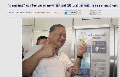 มื่อวันที่ 22 เมษายน นายวสันต์ มีวงษ์ โฆษกผู้ว่าฯกทม. เปิดเผยถึงกรณีที่บริษัท ระบบขนส่งมวลชนกรุงเทพ จำกัด (มหาชน) หรือรถไฟฟ้าบีทีเอส เตรียมปรับขึ้นค่าโดยสารว่า ในส่วนของ กทม.มีนโยบายเตรียมปรับลดค่าโดยสารรถไฟฟ้าบีทีเอสส่วนต่อขยายสายอ่อนนุช-แบริ่ง และสายตากสิน-บางหว้า 10 บาทตลอดสาย โดยจะเริ่มในต้นเดือนพฤษภาคมนี้ ซึ่งทั้ง 2 เส้นทาง กทม.สามารถกำหนดค่าโดยสารเองได้ เนื่องจาก กทม.ได้ทำสัญญาว่าจ้างบีทีเอสมาเดินรถเท่านั้น แต่ในส่วนเส้นทางสัมปทานของบีทีเอสนั้น กทม.ก็ไม่สามารถกำหนดค่าโดยสารได้ แต่ กทม.พร้อมจะหารือกับผู้บริหารรถไฟฟ้าบีทีเอสถึงเรื่องการปรับขึ้นค่าโดยสาร เพราะระบบเชื่อมต่อในรถไฟฟ้าส่วนต่อขยายของ กทม.ด้วย