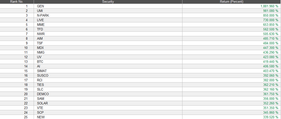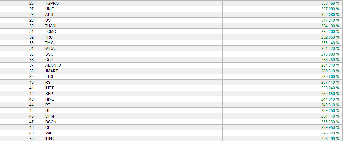 จัดอันดับ 50 หุ้นที่ให้ผลตอบแทนสูงสูด ใน 1 ปี (ระหว่างวันที่ 23/4/2012 - 24/4/2013)