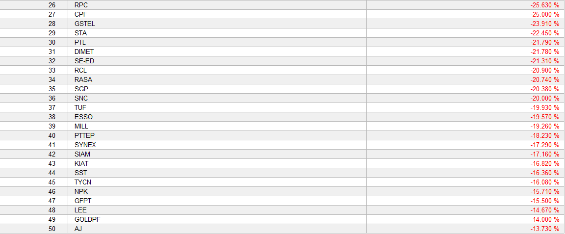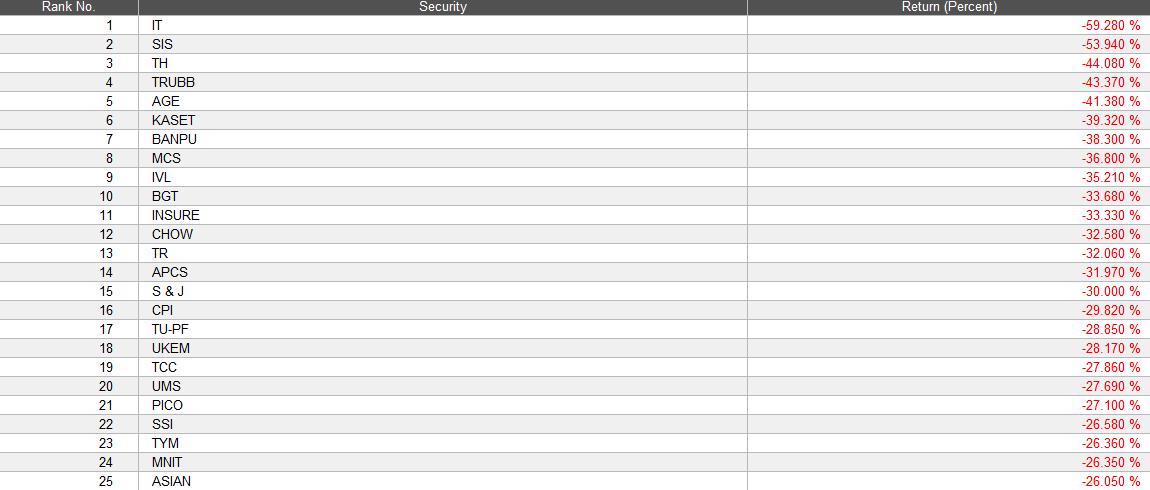 การจัดอันดับผลตอบแทนต่ำสุด (ระว่างวันที่ 23/4/2012 - 24/4/2013)
