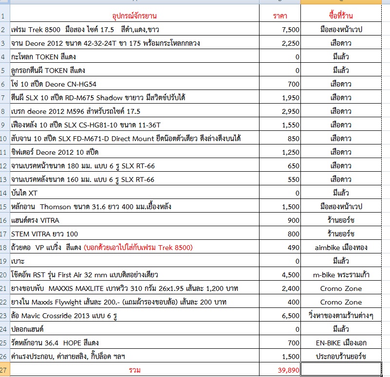 ประกอบรถเสือภูเขาตามสเปคนี้ช่วยชี้แนะ, แนะนำให้ทีครับ