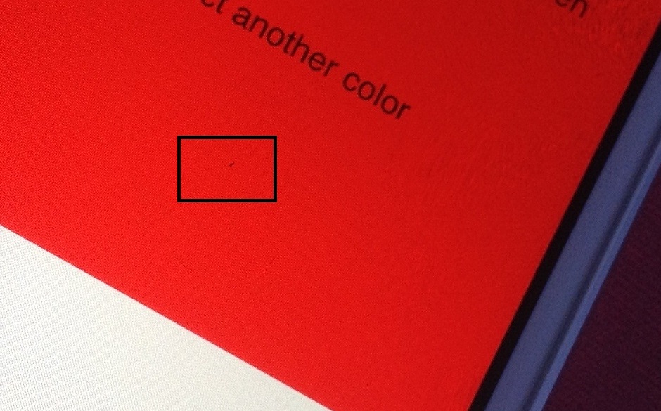 และ เช็ค dead pixel ที่ http://iphonedpt.awardspace.com ก็เจอดังนี้ (รูปถ่ายจาก ipad แล้วขนาดใหญ่มากขอตัดมาเฉพาะบริเวณปัญหาละกันครับ)