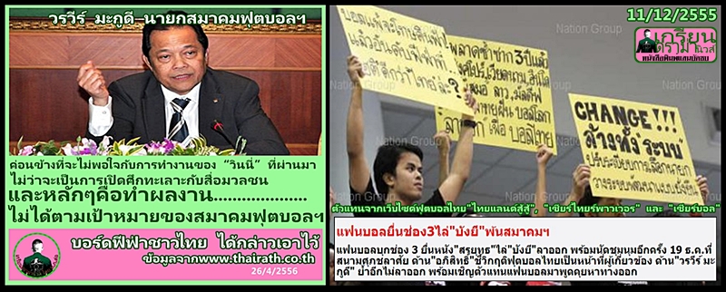 Nation TV - เว็บไซต์สถานีข่าวอันดับ 1 ของเมืองไทย "หลังจาก"บังยี" นายวรวีร์ มะกูดี นายกสมาคมฟุตบอลแห่งประเทศไทย ถูกคณะกรรมการวินัยฟีฟ่าประกาศพักงานชั่วคราว 90 วัน โดยห้ามยุ่งเกี่ยวกับวง