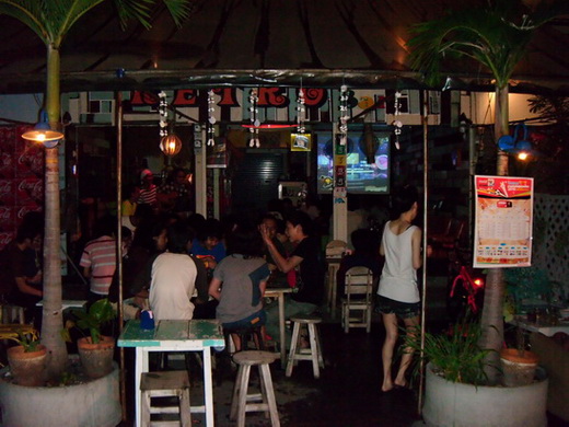เลยไปอีกนิด ร้านเหล้าที่ปิดไปแล้วสองสามร้าน ยังมีขวดเหล้า เบียร์ มีคราบร่องรอยของความเริงร่าของคืนที่ผ่านมาทิ้งค้างอยู่บนโต๊ะ....