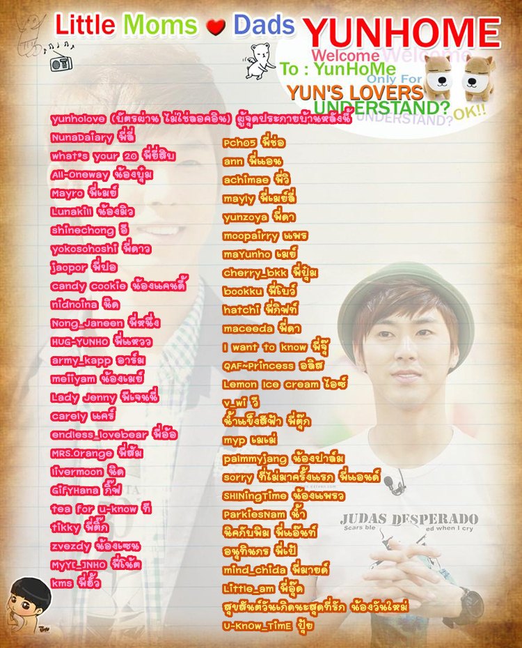 - มีเหตุผลและมีวิจารณญาณก่อนจะทำอะไร ก่อนจะเชื่ออะไร เกี่ยวกับยุนโฮหรือข่าวต่าง ๆ