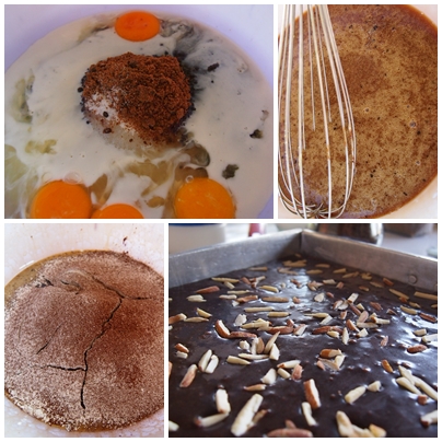 >>>ร่อนผงโกโก้และแป้งเค้กลงไป ผสมแค่พอเข้ากัน
