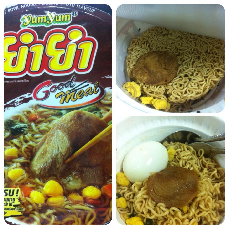 เลยไปเติมน้ำร้อนจนเต็มถ้วย ก็ยังคงเค็มอยู่บ้าง อดทนกินไปสักพักเริ่ม