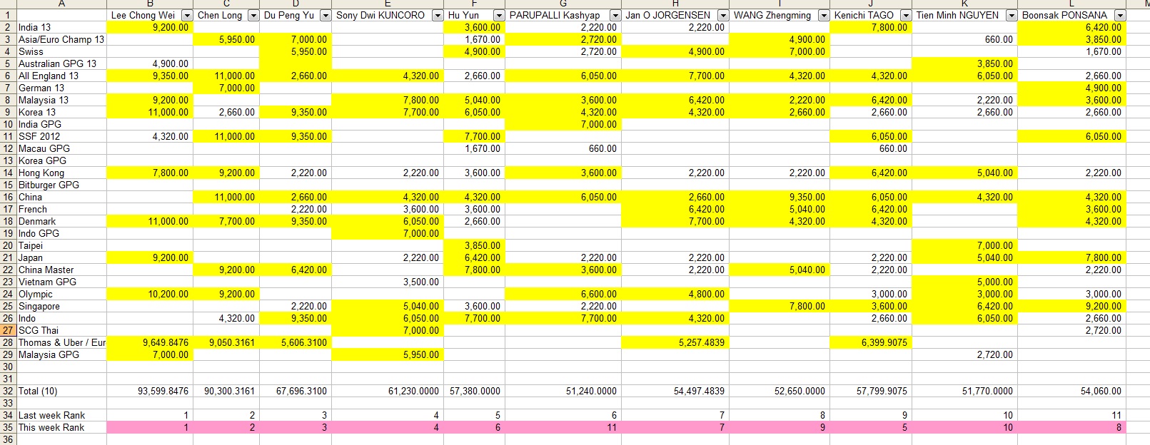 Unofficial Ranking ของนักแบดมินตัน อาทิตย์หน้า