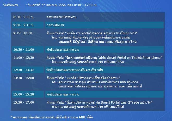 เมื่อ วันเสาร์ ไปงานสัมมนาของ Efinance มา ได้ความรู้ทั้ง แนว VI และ แนวเทคนิค
