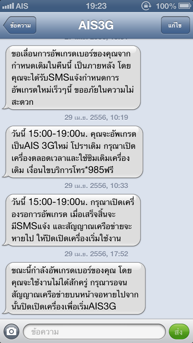 AIS 3G ได้รับ SMS แจ้ง upgrade แล้ว แต่ถึงเวลาก็อัพไม่ได้