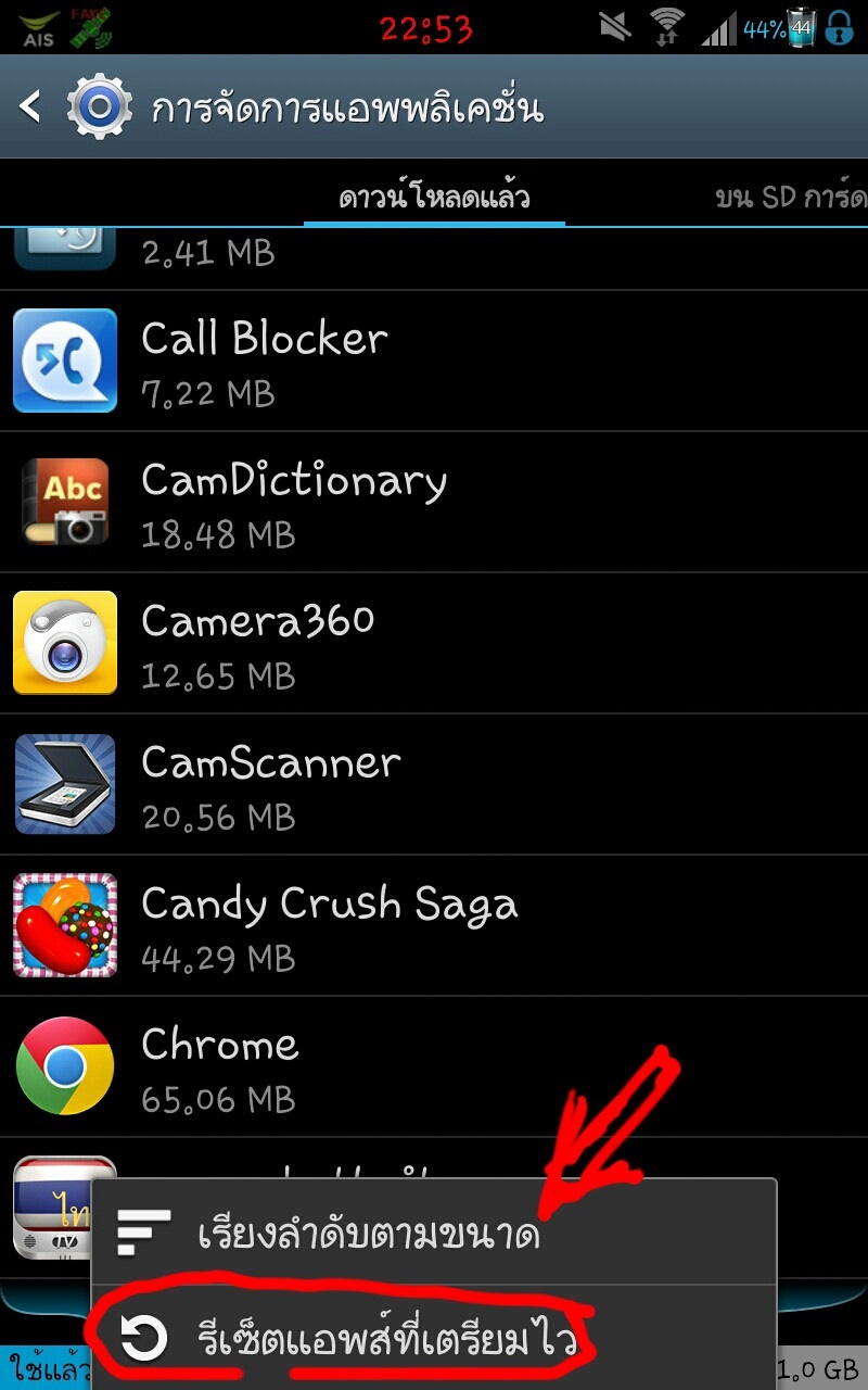 เข้าที่การตั้งค่า> แอพพิเคชั่น >กดปุ่ม ตั้งค่า แล้วเลือก reset ครับ