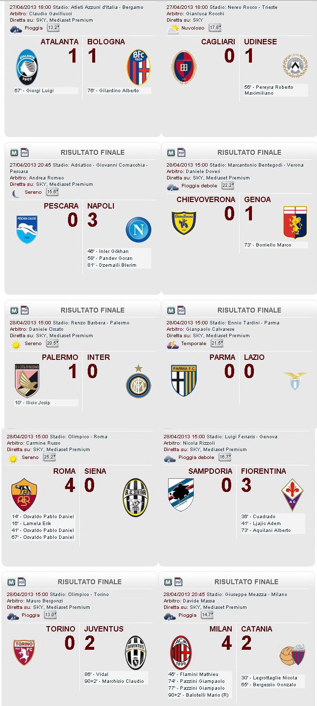 [ CALCIO ] ... ผล-ภาพ ฟุตบอลกัลโช่ เซเรีย อา ... week 34 ... [ 28-04-2013 ]