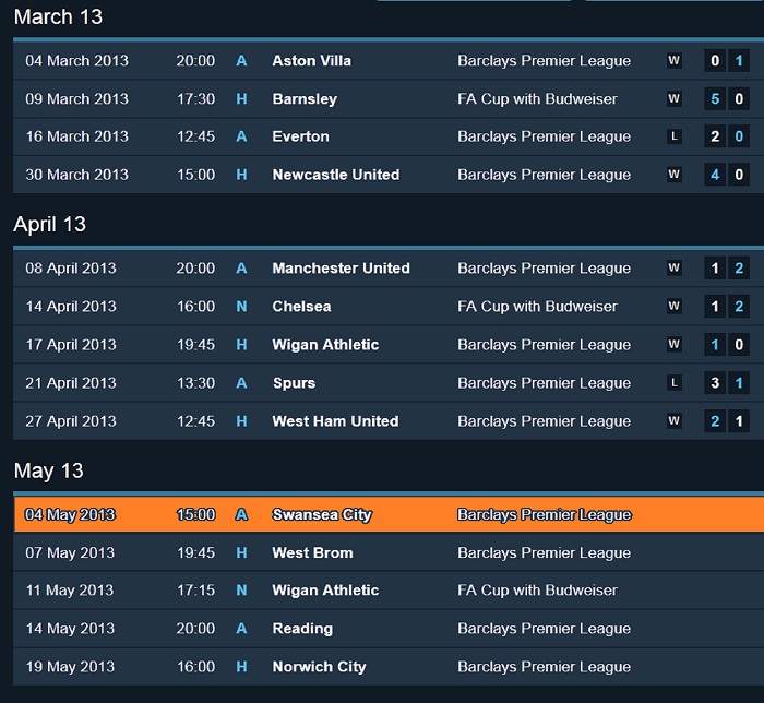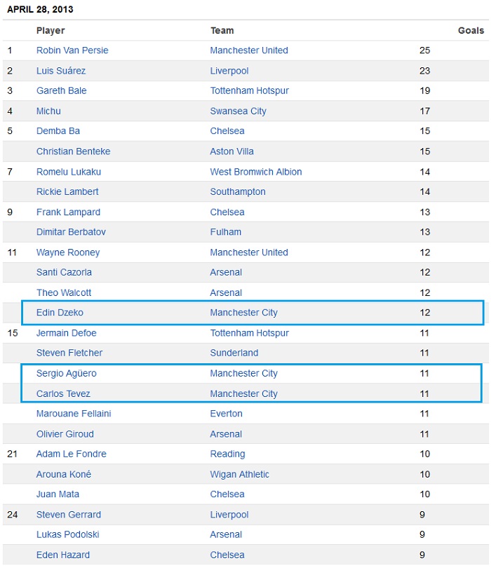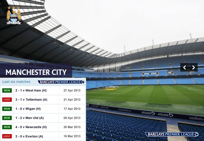 โปรแกรมและผลการแข่งขัน Manchester City ฤดูกาล 2012/2013